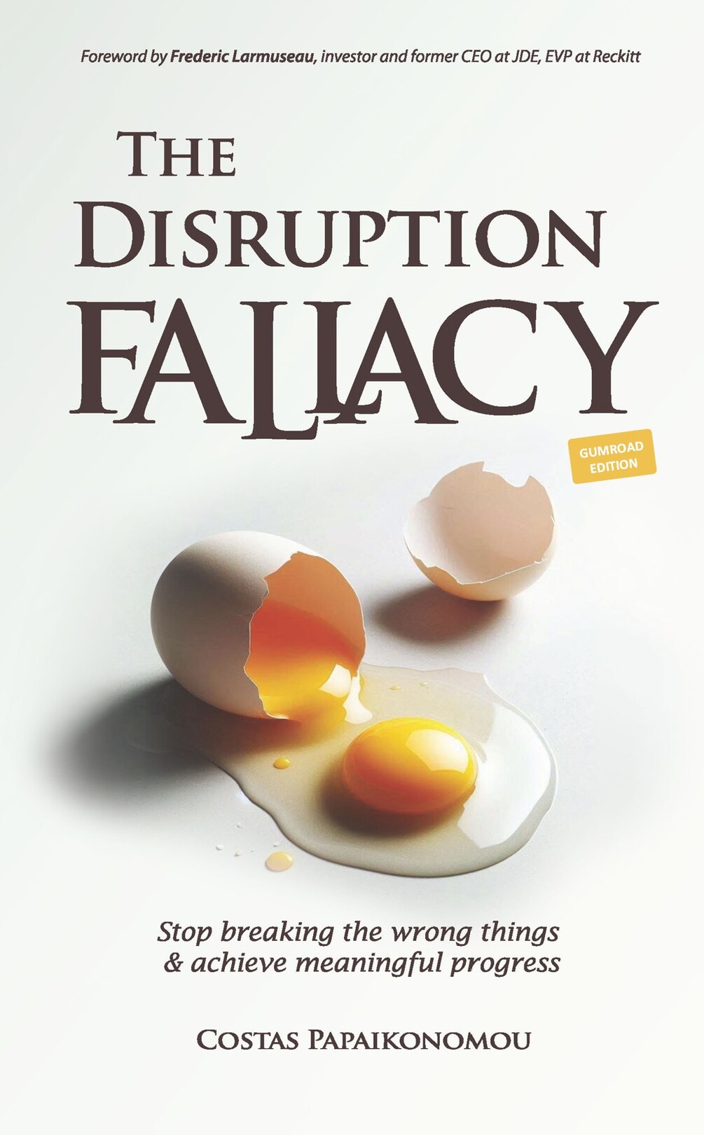Even though Disruption Delusion sounded nicer, I opted for Disruption Fallacy. It describes best what I have seen happen around me. It’s not about ignorance or bad intent, but naivety and wishful thinking.
